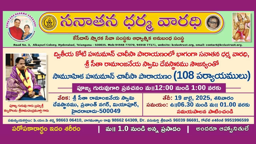 ద్వితీయ కోటి హనుమాన్ చాలీసా పారాయణంలో భాగంగా సనాతన ధర్మ వారధి, శ్రీ సీతా రామాంజనేయ స్వామి దేవస్థానము సౌజన్యంతో